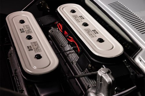 This example, finished in Indianapolis Grey over black leather, carries a particularly elegant presence. The metallic grey emphasises the curvature of the bodywork and the contrast of the rear grilles, while the dark interior preserves the focused, purposeful atmosphere of the cabin.